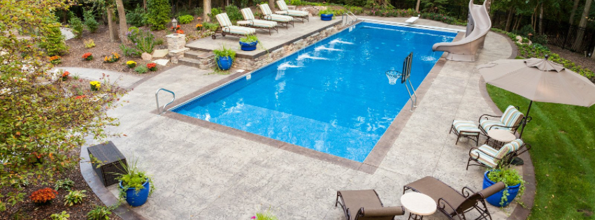 Stamped concrete can emulate slate, flagstone, or hand-carved stone without the high maintenance. It creates a cohesive look while adding slip resistance around the pool.